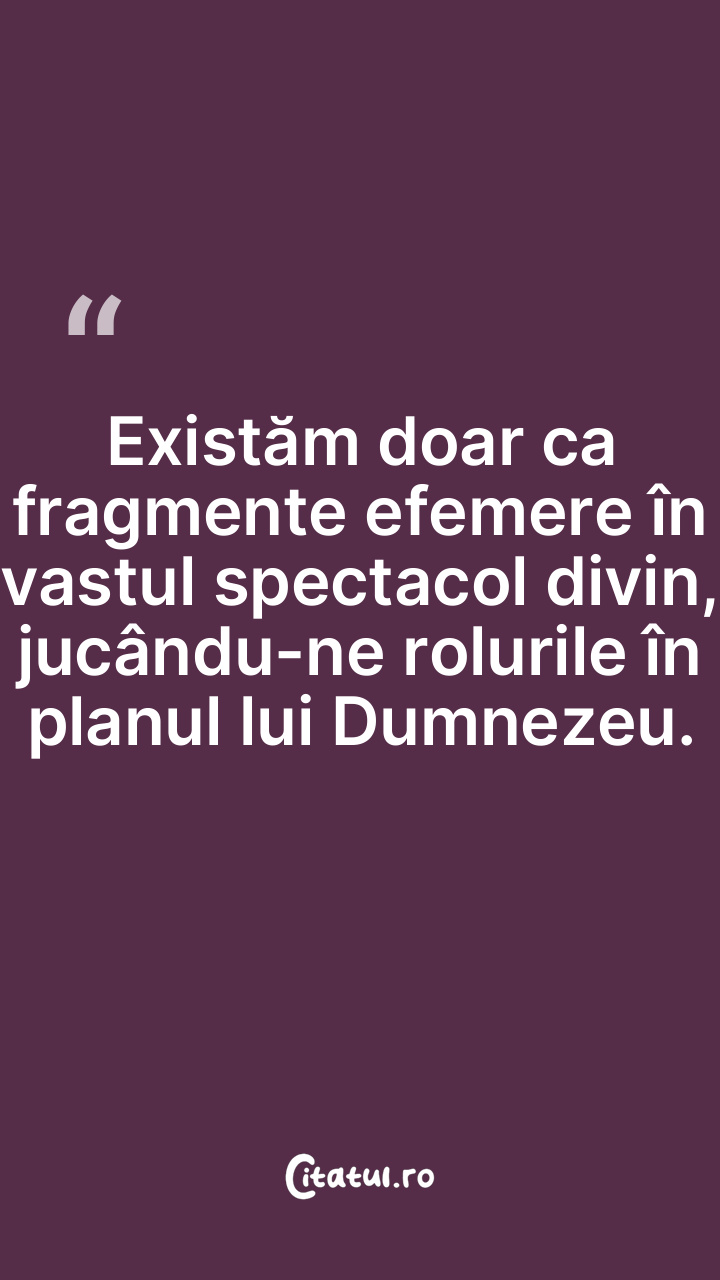 Existăm doar ca fragmente efemere în vastul spectacol divin, jucându-ne rolurile în planul lui Dumnezeu.