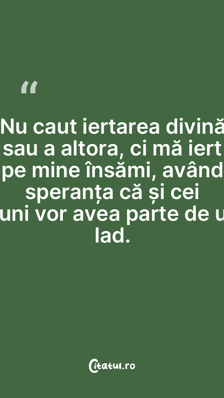 Nu caut iertarea divină sau a altora, ci mă iert p...