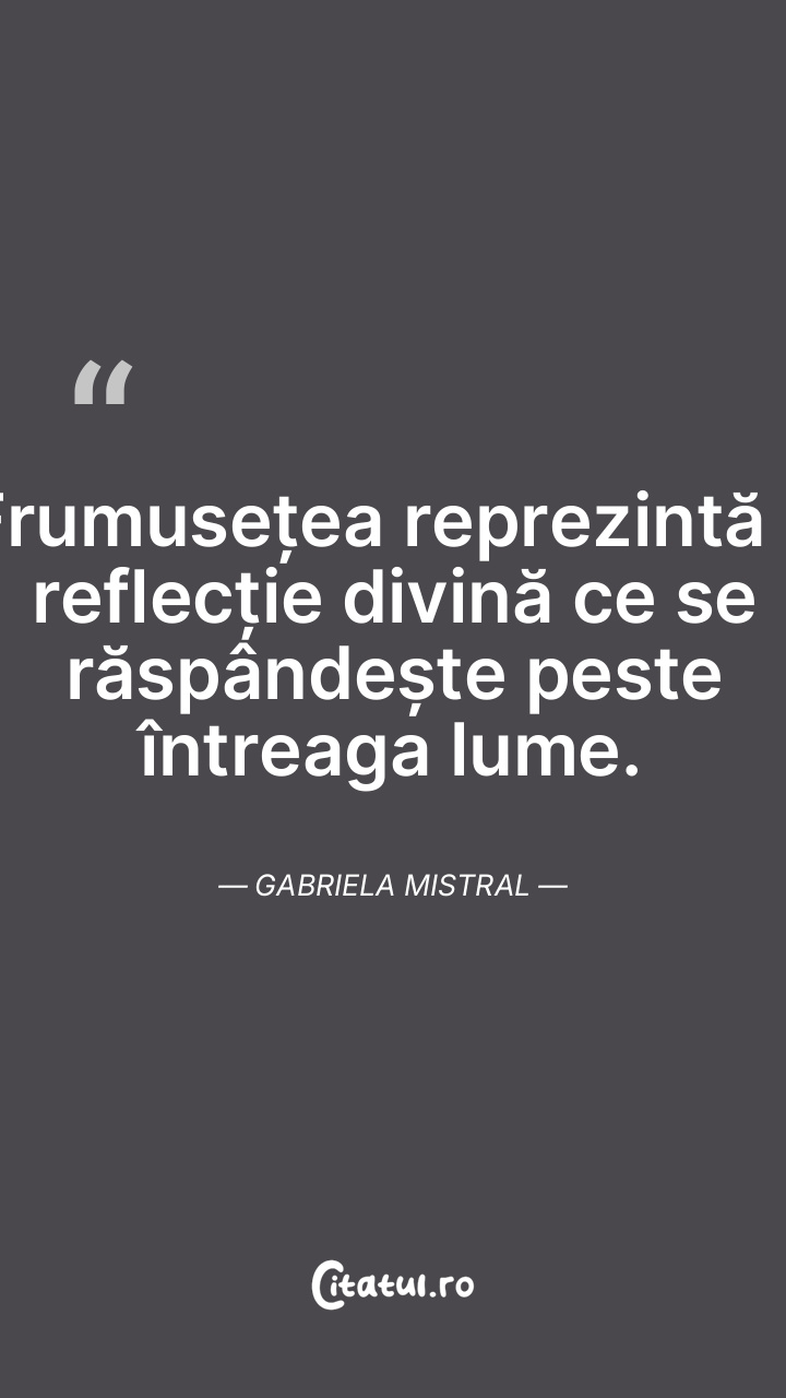 Frumusețea reprezintă o reflecție divină ce se răspândește peste întreaga lume. Gabriela Mistral