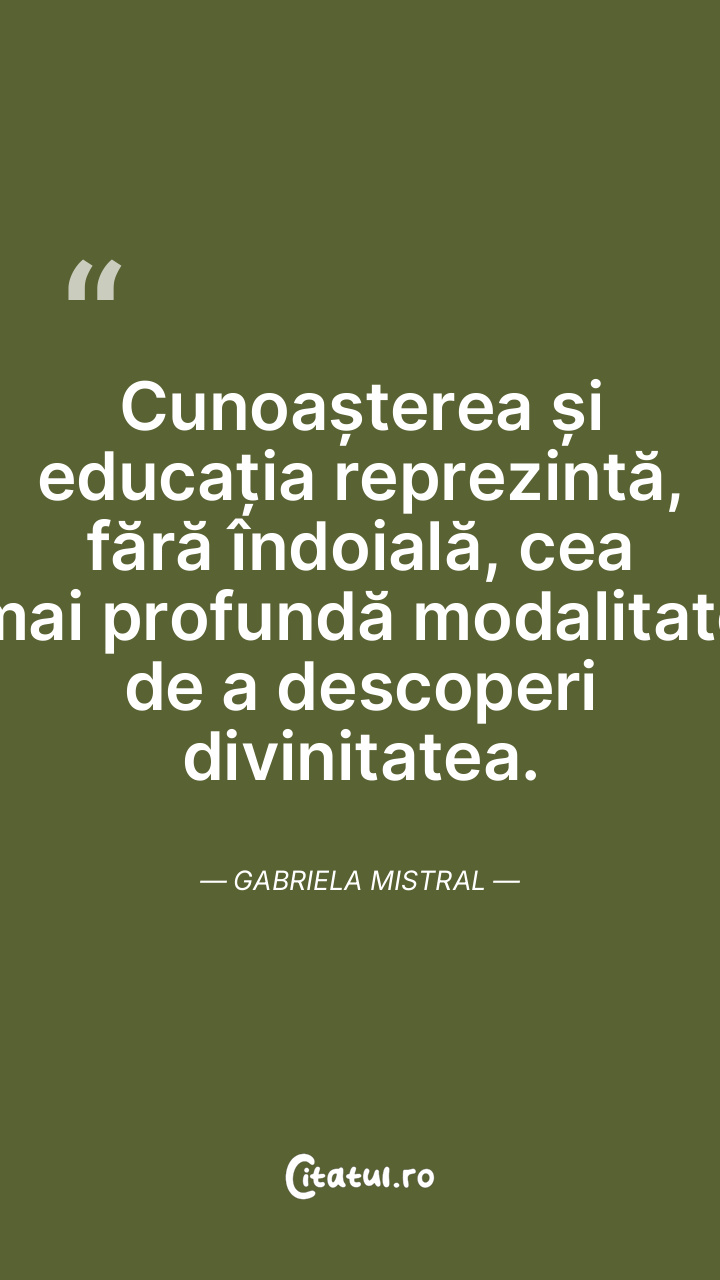 Cunoașterea și educația reprezintă, fără îndoială, cea mai profundă modalitate de a descoperi divinitatea. Gabriela Mistral