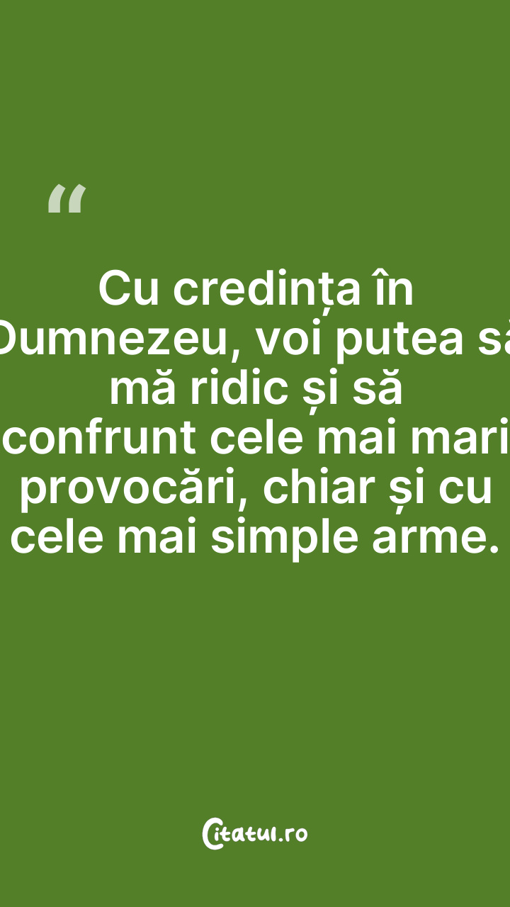 Cu credința în Dumnezeu, voi putea să mă ridic și să confrunt cele mai mari provocări, chiar și cu cele mai simple arme.