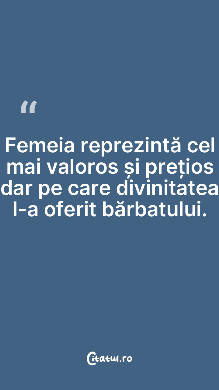 Femeia reprezintă cel mai valoros și prețios dar pe care divinitatea l-a oferit bărbatului.