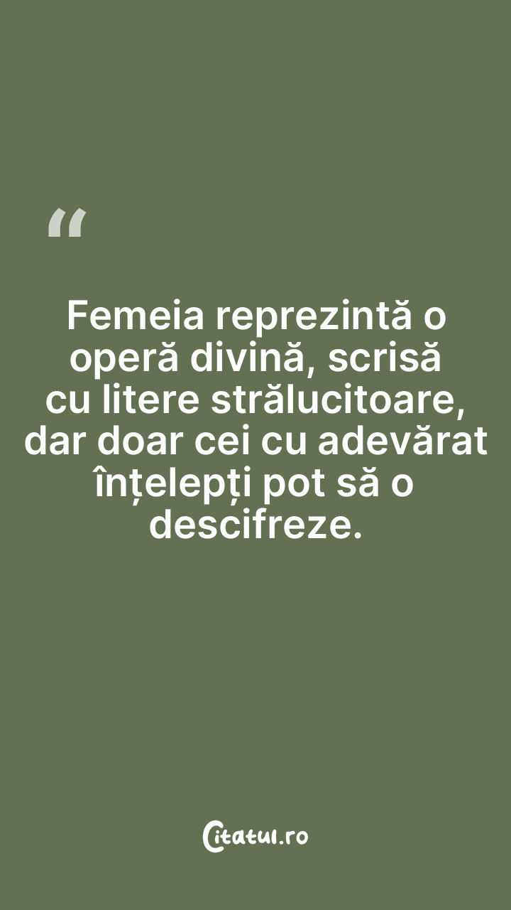 Femeia reprezintă o operă divină, scrisă cu litere...