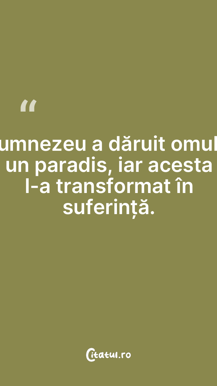 Dumnezeu a dăruit omului un paradis, iar acesta l-a transformat în suferință.