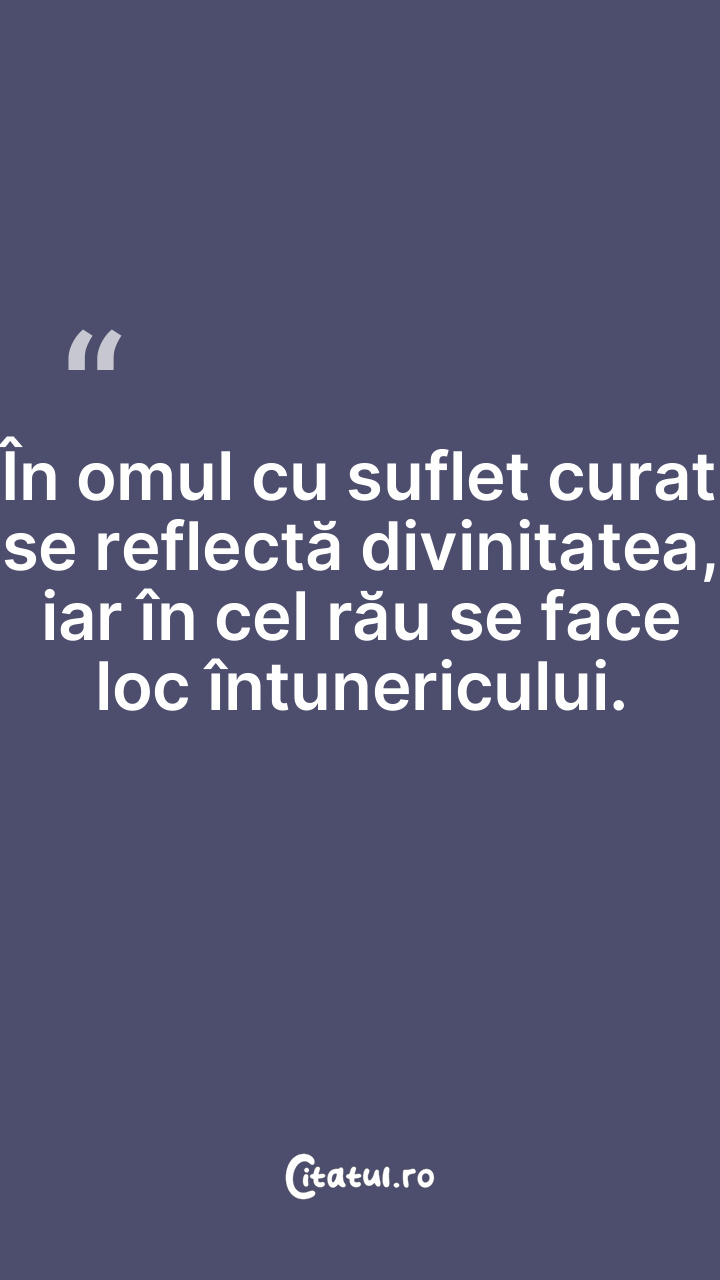 În omul cu suflet curat se reflectă divinitatea, iar în cel rău se face loc întunericului.