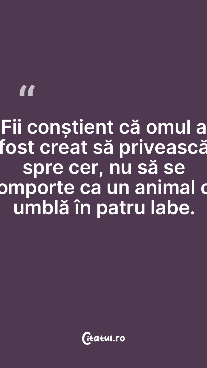 Fii conștient că omul a fost creat să privească spre cer, nu să se comporte ca un animal ce umblă în patru labe.