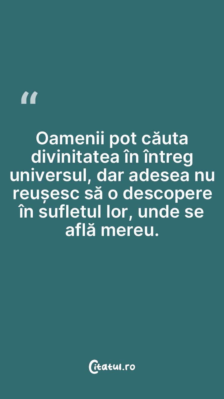 Oamenii pot căuta divinitatea în întreg universul, dar adesea nu reușesc să o descopere în sufletul lor, unde se află mereu.