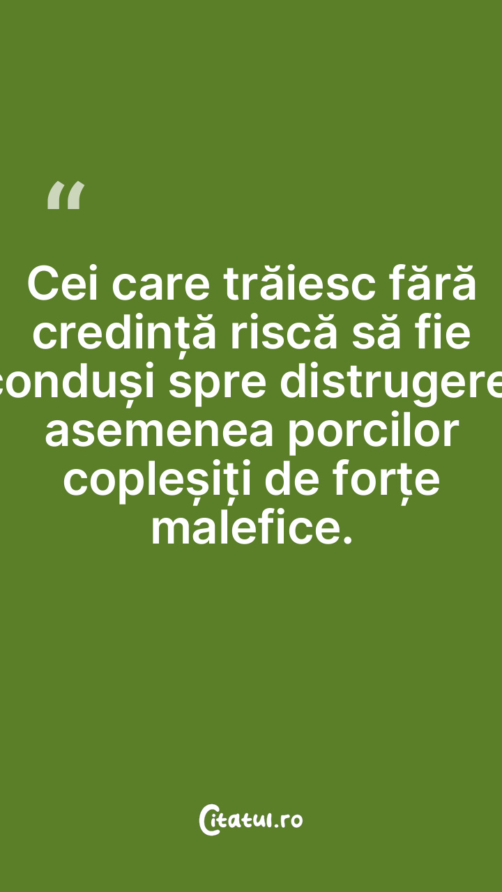Cei care trăiesc fără credință riscă să fie conduși spre distrugere, asemenea porcilor copleșiți de forțe malefice.