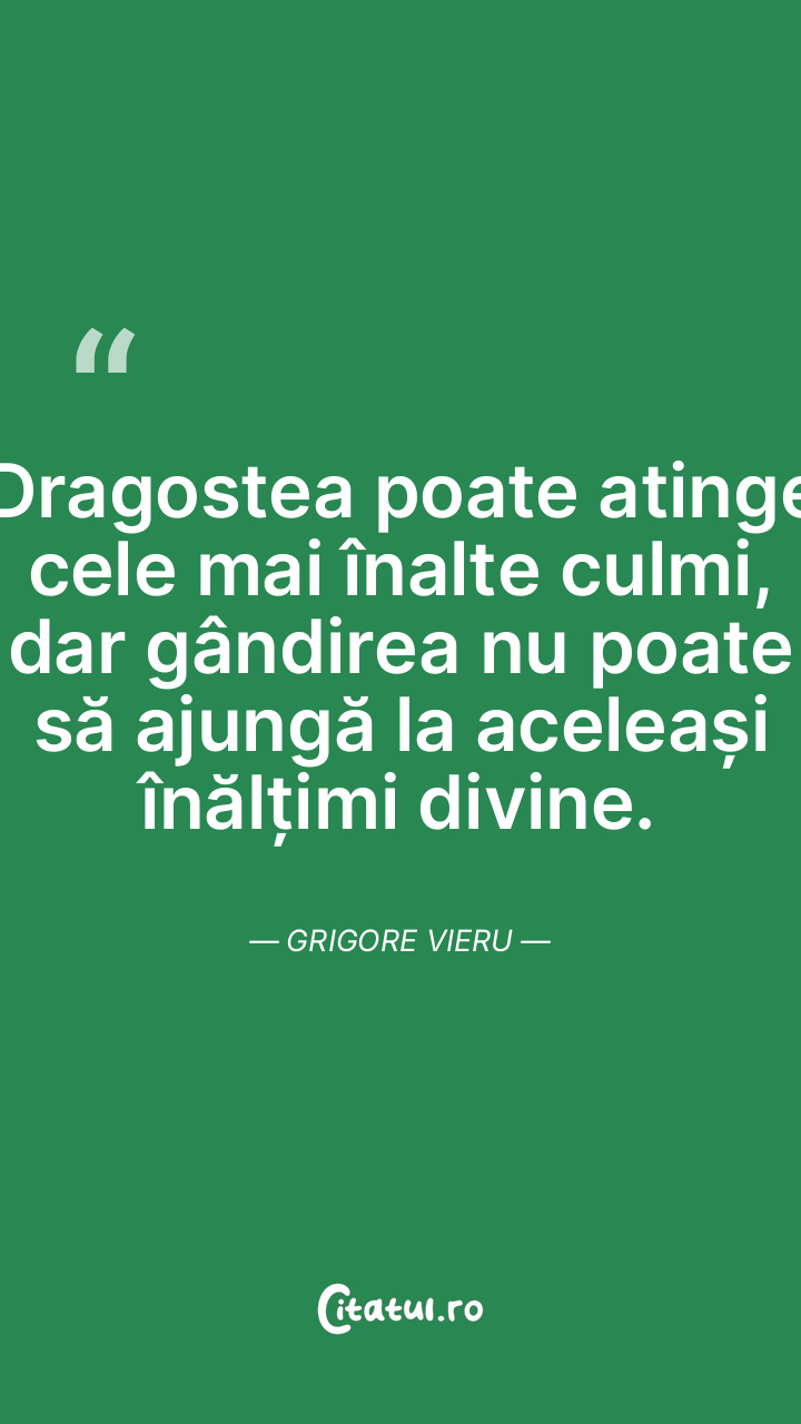 Dragostea poate atinge cele mai înalte culmi, dar gândirea nu poate să ajungă la aceleași înălțimi divine. Grigore Vieru
