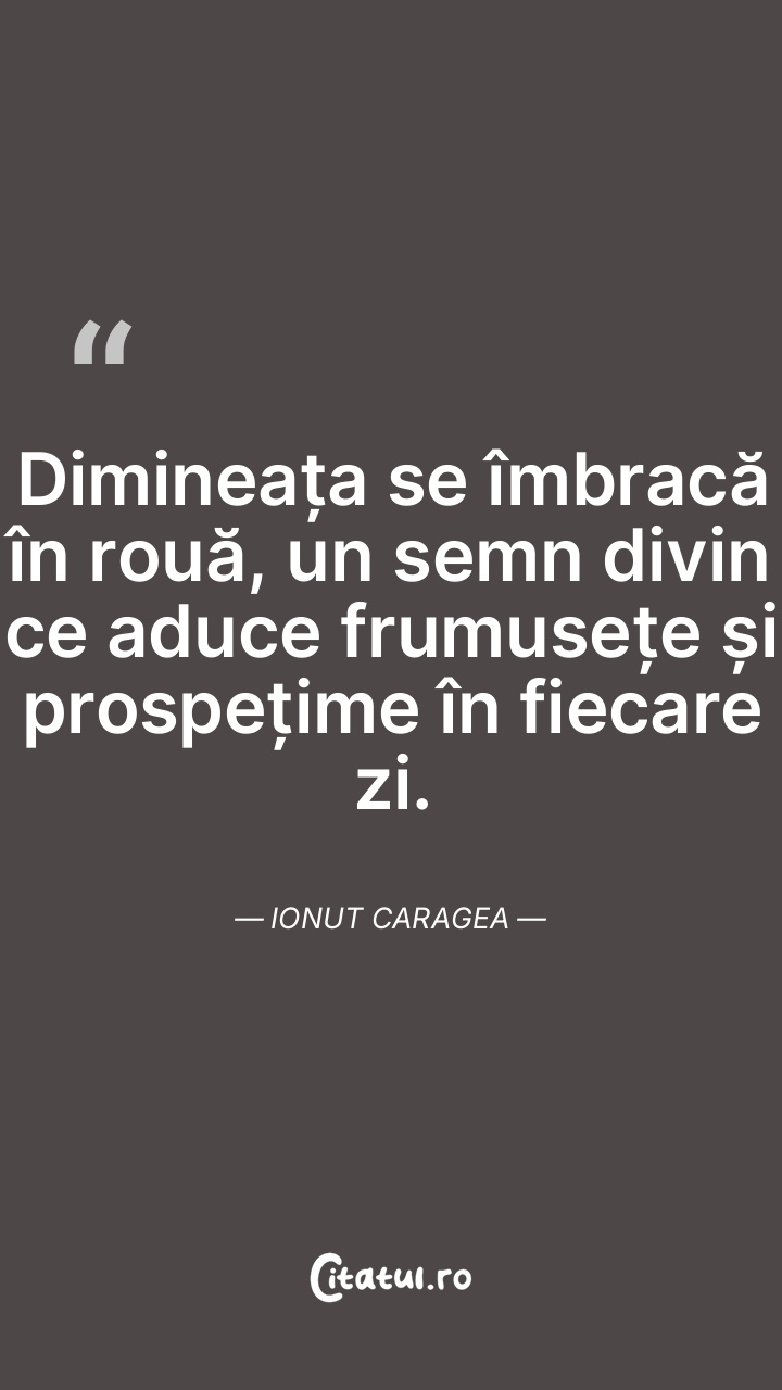 Dimineața se îmbracă în rouă, un semn divin ce aduce frumusețe și prospețime în fiecare zi. Ionut Caragea