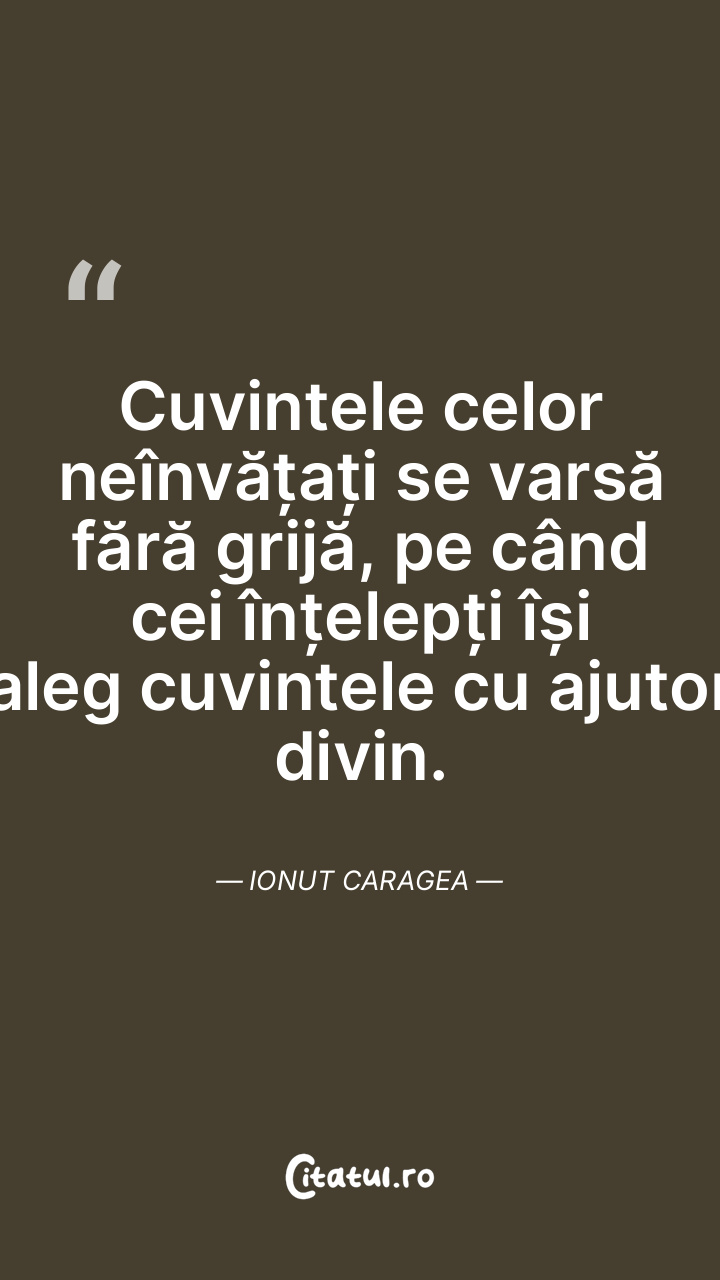 Cuvintele celor neînvățați se varsă fără grijă, pe când cei înțelepți își aleg cuvintele cu ajutor divin. Ionut Caragea