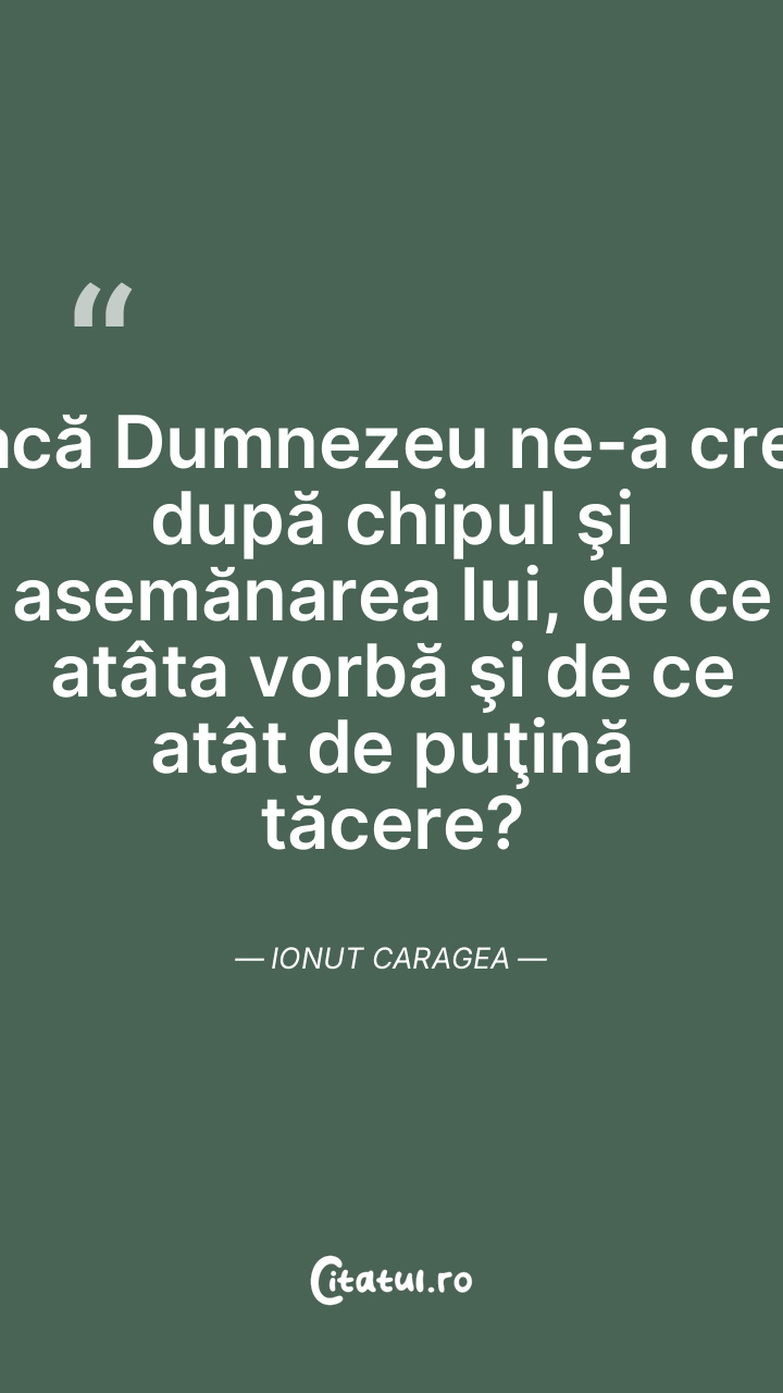 Dacă Dumnezeu ne-a creat după chipul şi asemănarea lui, de ce atâta vorbă şi de ce atât de puţină tăcere? Ionut Caragea