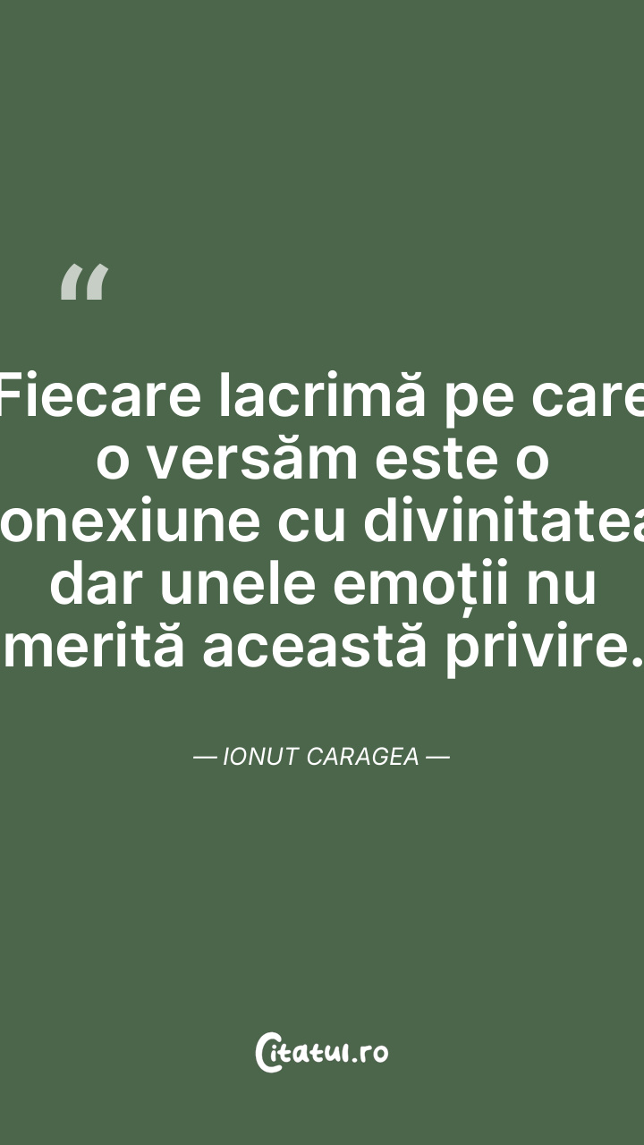 Fiecare lacrimă pe care o versăm este o conexiune cu divinitatea, dar unele emoții nu merită această privire. Ionut Caragea