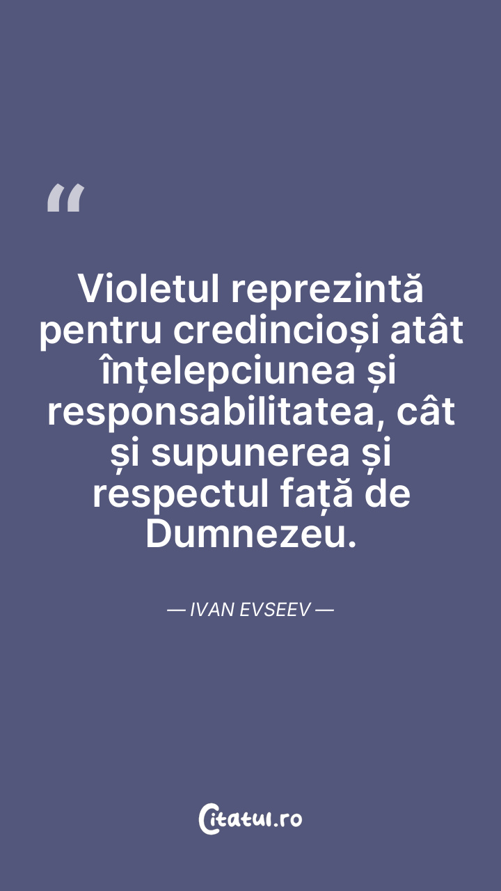 Violetul reprezintă pentru credincioși atât înțelepciunea și responsabilitatea, cât și supunerea și respectul față de Dumnezeu. Ivan Evseev