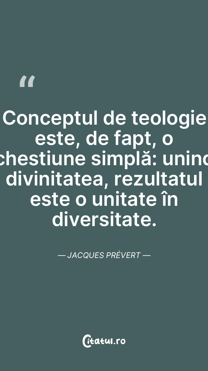 Conceptul de teologie este, de fapt, o chestiune simplă: unind divinitatea, rezultatul este o unitate în diversitate. Jacques Prévert