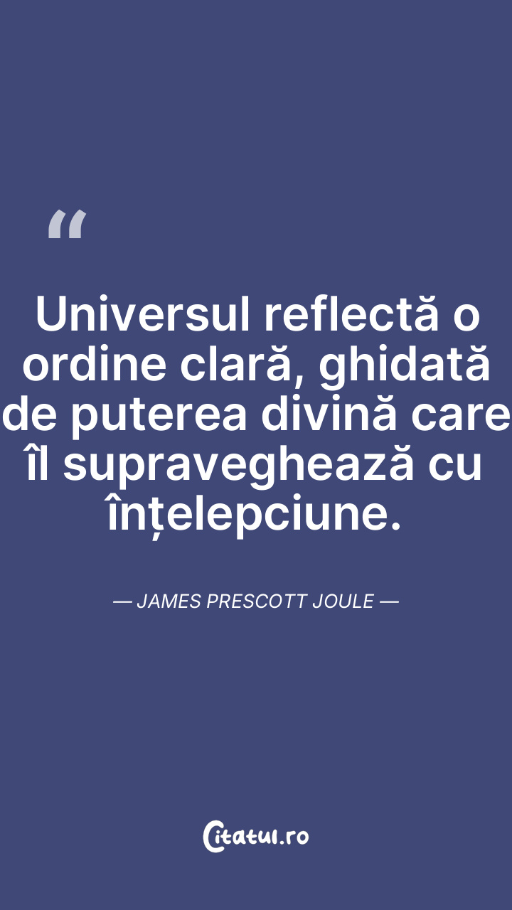 Universul reflectă o ordine clară, ghidată de puterea divină care îl supraveghează cu înțelepciune. James Prescott Joule