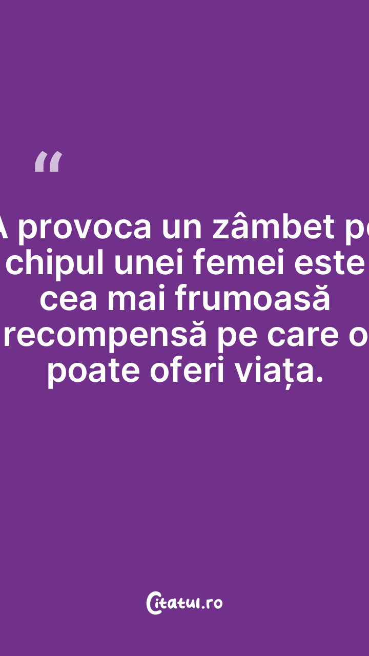 A provoca un zâmbet pe chipul unei femei este cea mai frumoasă recompensă pe care o poate oferi viața.