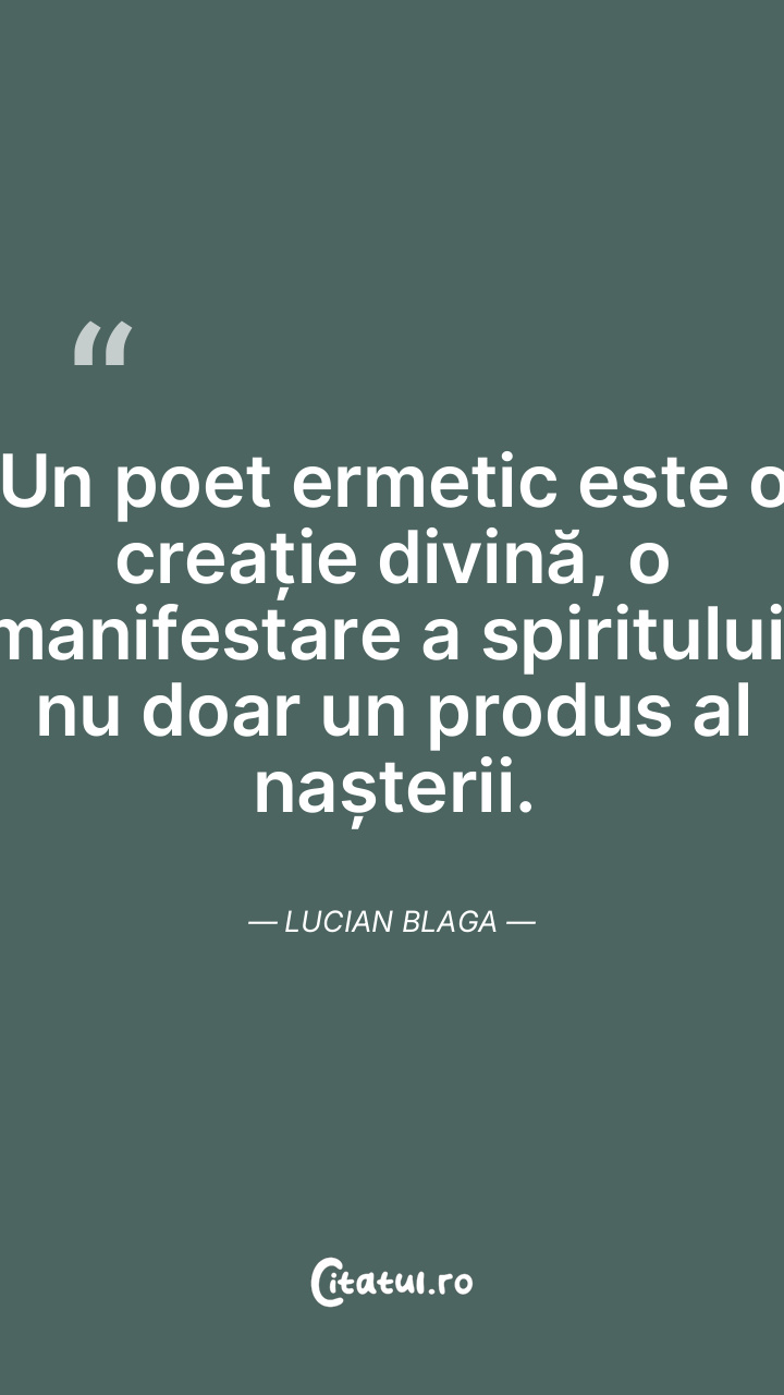 Un poet ermetic este o creație divină, o manifestare a spiritului, nu doar un produs al nașterii. Lucian Blaga