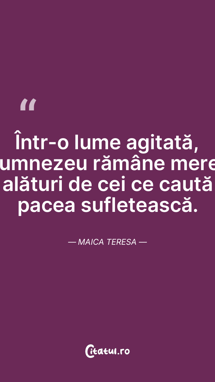 Într-o lume agitată, Dumnezeu rămâne mereu alături de cei ce caută pacea sufletească. Maica Teresa
