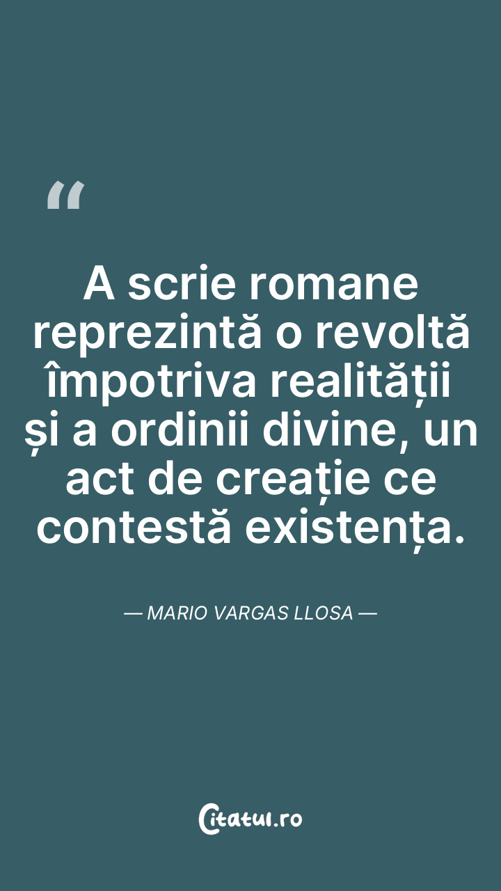 A scrie romane reprezintă o revoltă împotriva realității și a ordinii divine, un act de creație ce contestă existența. Mario Vargas Llosa