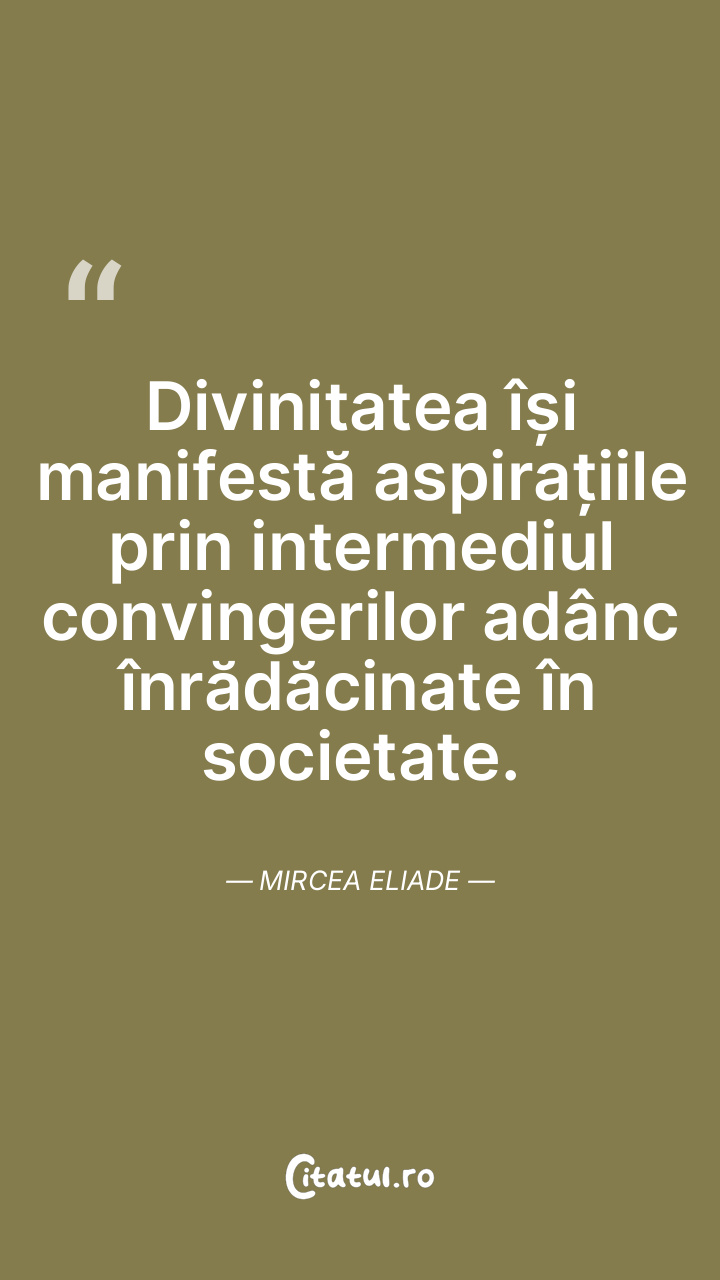 Divinitatea își manifestă aspirațiile prin intermediul convingerilor adânc înrădăcinate în societate. Mircea Eliade
