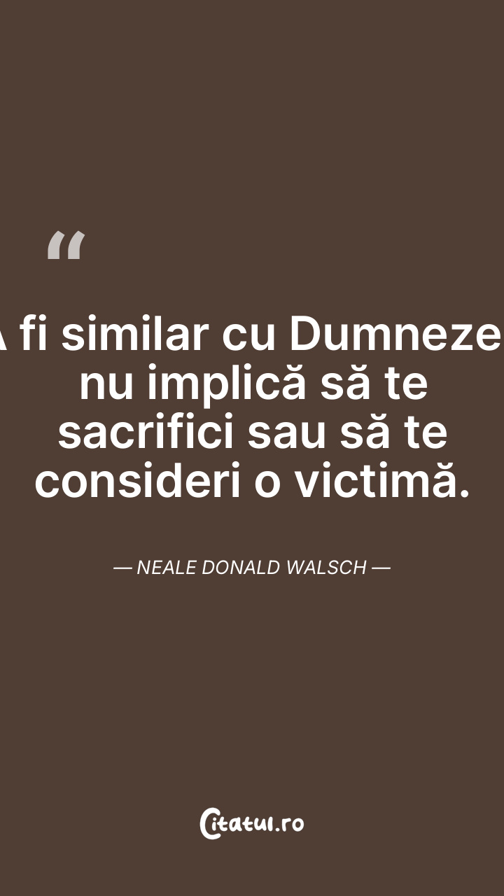A fi similar cu Dumnezeu nu implică să te sacrifici sau să te consideri o victimă. Neale Donald Walsch