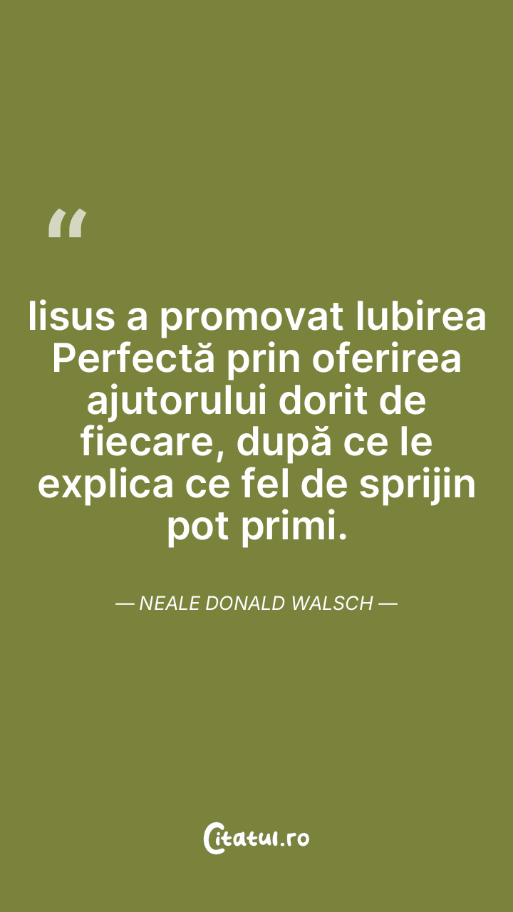 Iisus a promovat Iubirea Perfectă prin oferirea ajutorului dorit de fiecare, după ce le explica ce fel de sprijin pot primi. Neale Donald Walsch