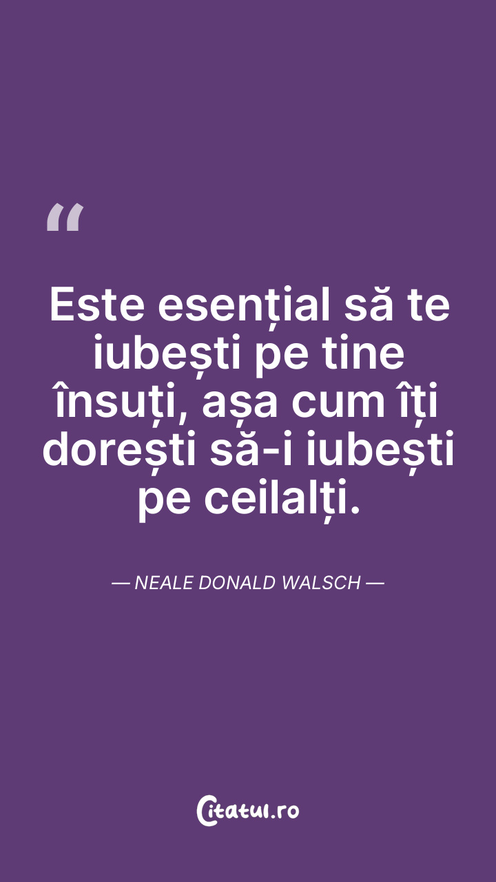 Este esențial să te iubești pe tine însuți, așa cum îți dorești să-i iubești pe ceilalți. Neale Donald Walsch
