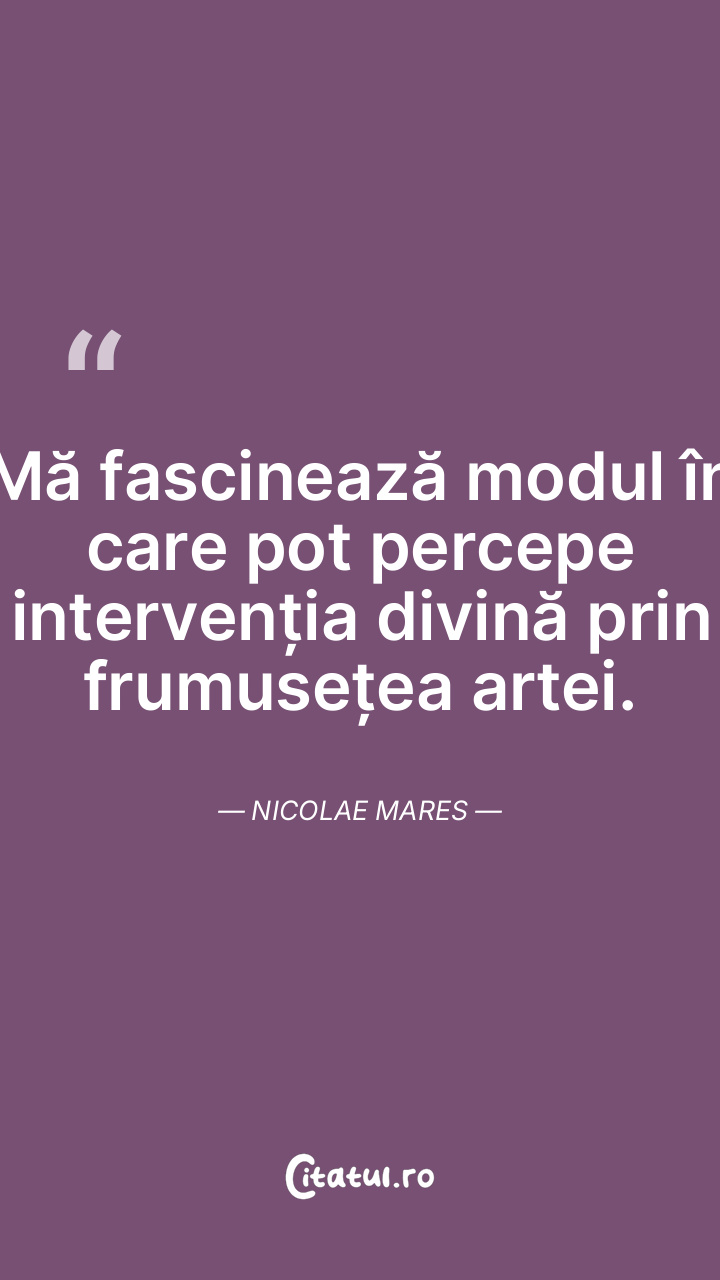 Mă fascinează modul în care pot percepe intervenția divină prin frumusețea artei. Nicolae Mares