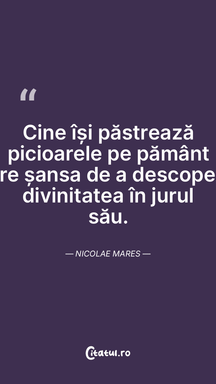 Cine își păstrează picioarele pe pământ are șansa de a descoperi divinitatea în jurul său. Nicolae Mares