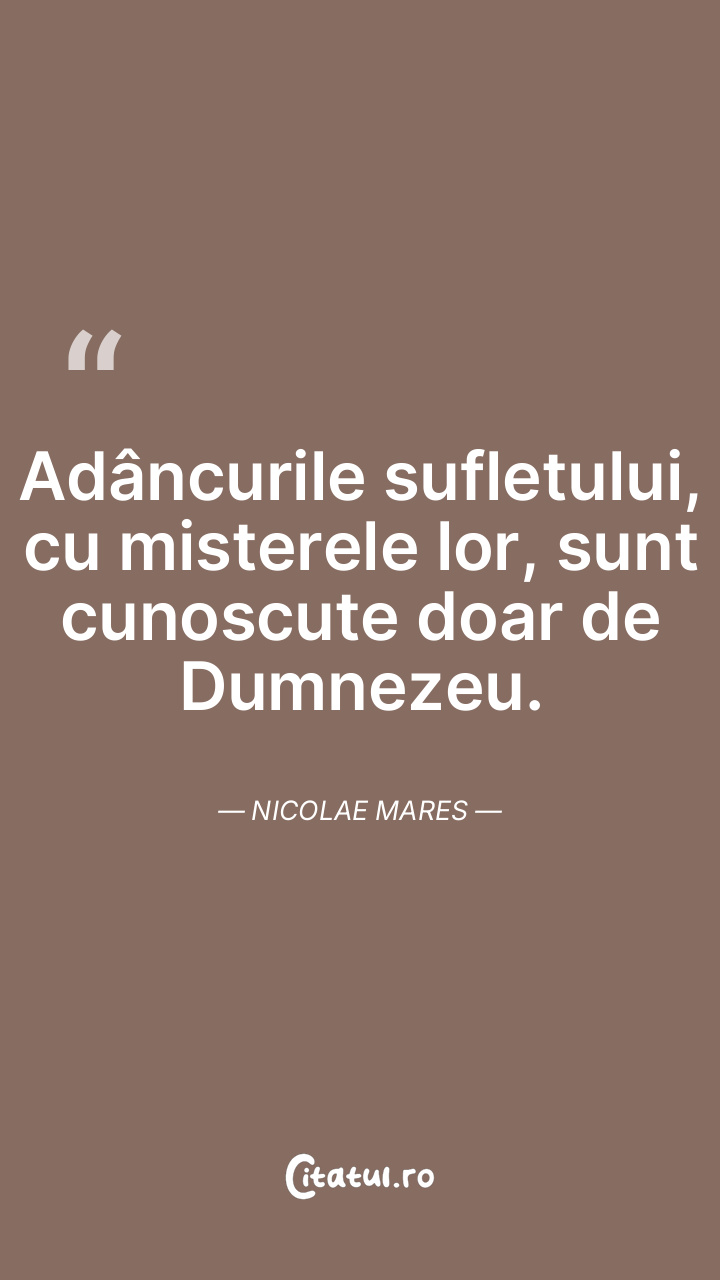 Adâncurile sufletului, cu misterele lor, sunt cunoscute doar de Dumnezeu. Nicolae Mares