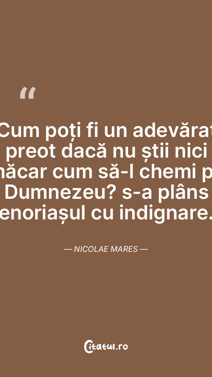 Cum poți fi un adevărat preot dacă nu știi nici măcar cum să-l chemi pe Dumnezeu? s-a plâns enoriașul cu indignare. Nicolae Mares