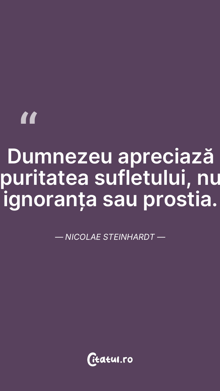 Dumnezeu apreciază puritatea sufletului, nu ignoranța sau prostia. Nicolae Steinhardt