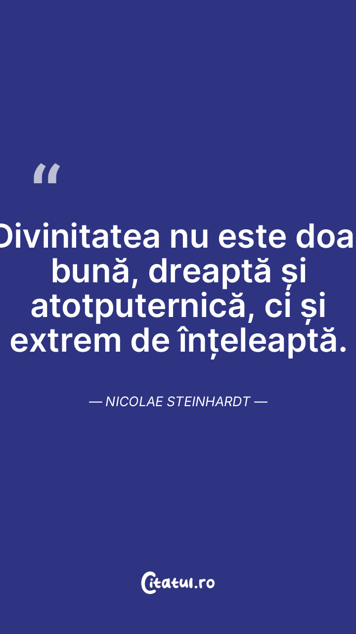 Divinitatea nu este doar bună, dreaptă și atotputernică, ci și extrem de înțeleaptă. Nicolae Steinhardt
