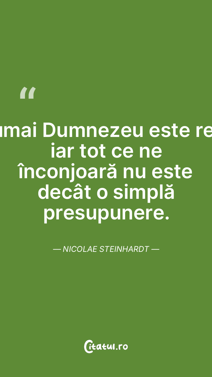 Numai Dumnezeu este real, iar tot ce ne înconjoară nu este decât o simplă presupunere. Nicolae Steinhardt