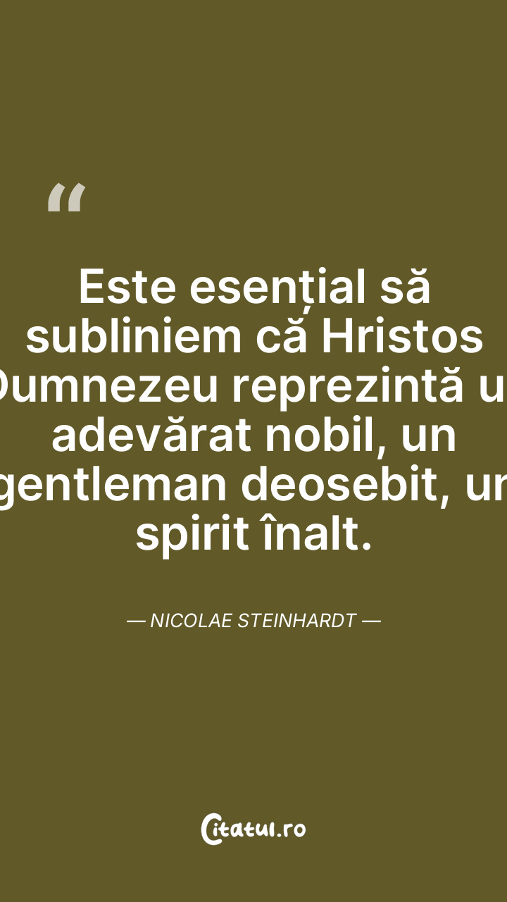 Este esențial să subliniem că Hristos Dumnezeu reprezintă un adevărat nobil, un gentleman deosebit, un spirit înalt. Nicolae Steinhardt