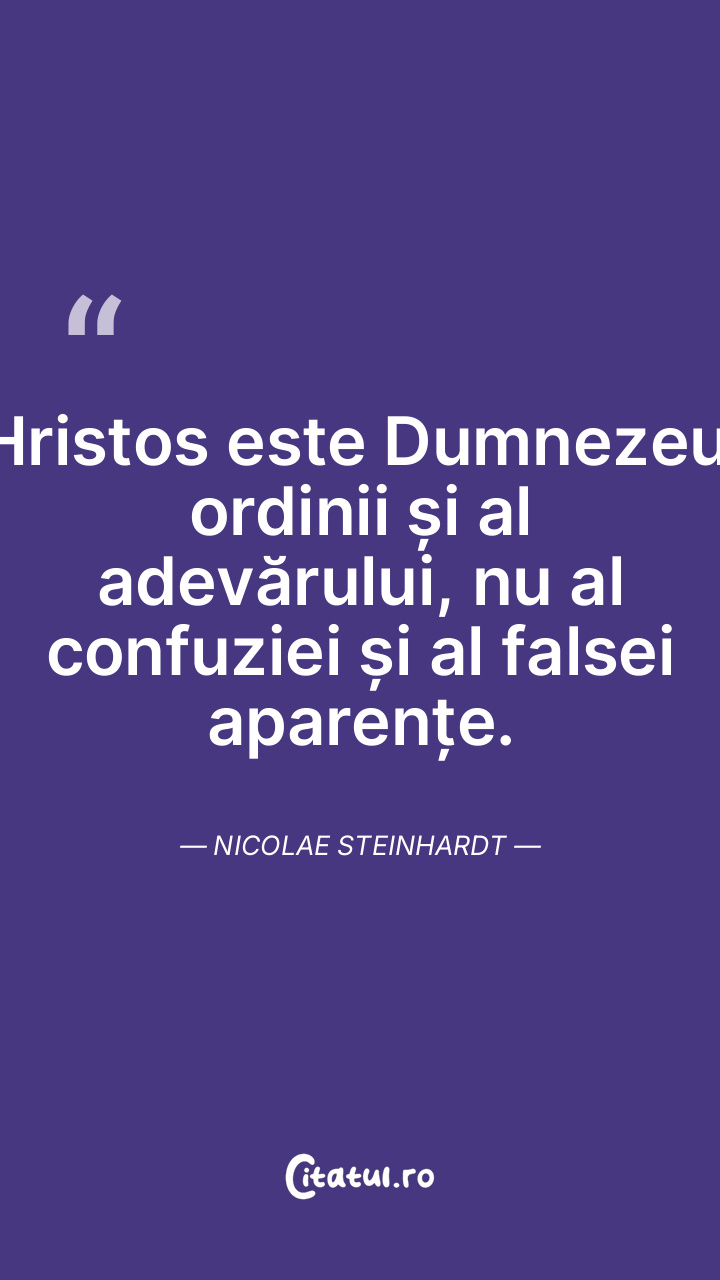 Hristos este Dumnezeul ordinii și al adevărului, nu al confuziei și al falsei aparențe. Nicolae Steinhardt