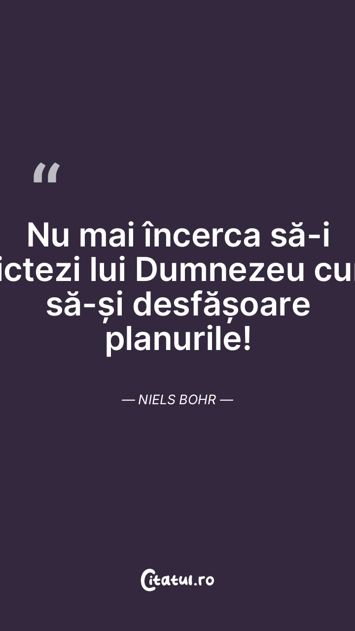 Nu mai încerca să-i dictezi lui Dumnezeu cum să-și desfășoare planurile! Niels Bohr