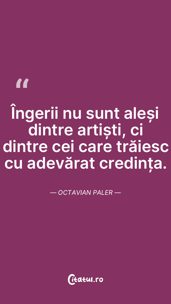 Îngerii nu sunt aleși dintre artiști, ci dintre cei care trăiesc cu adevărat credința. Octavian Paler