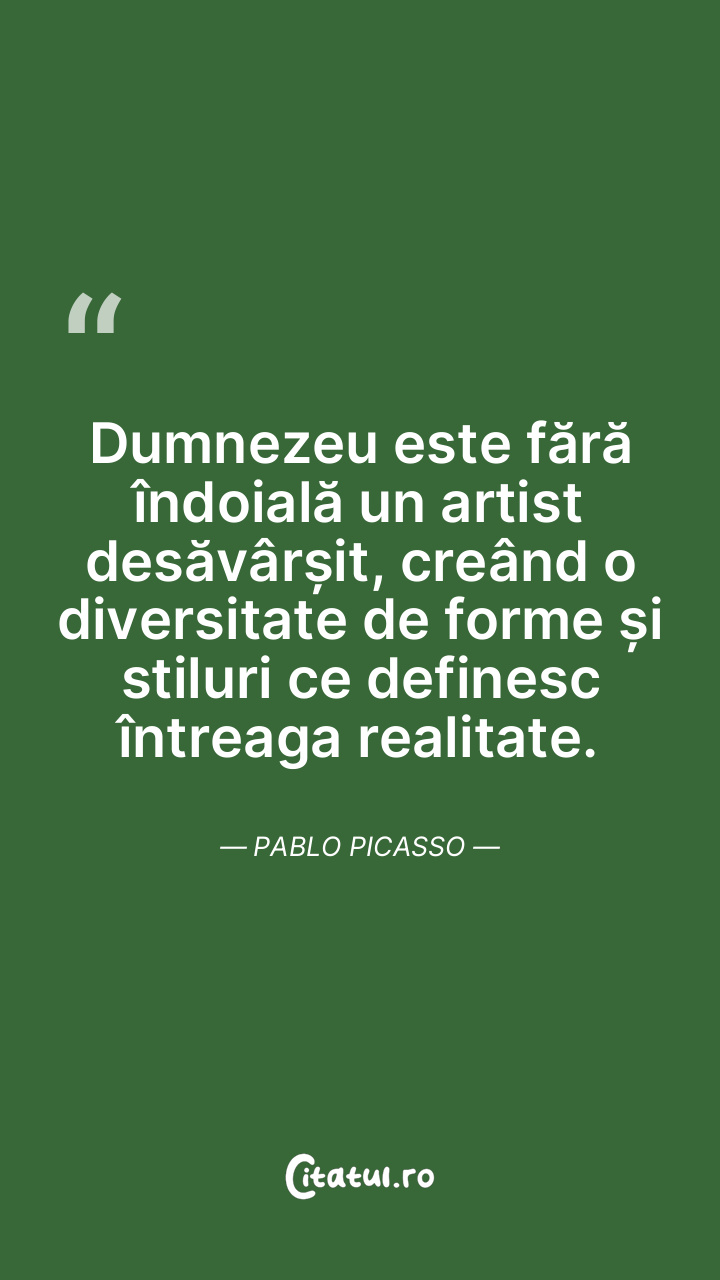 Dumnezeu este fără îndoială un artist desăvârșit, creând o diversitate de forme și stiluri ce definesc întreaga realitate. Pablo Picasso