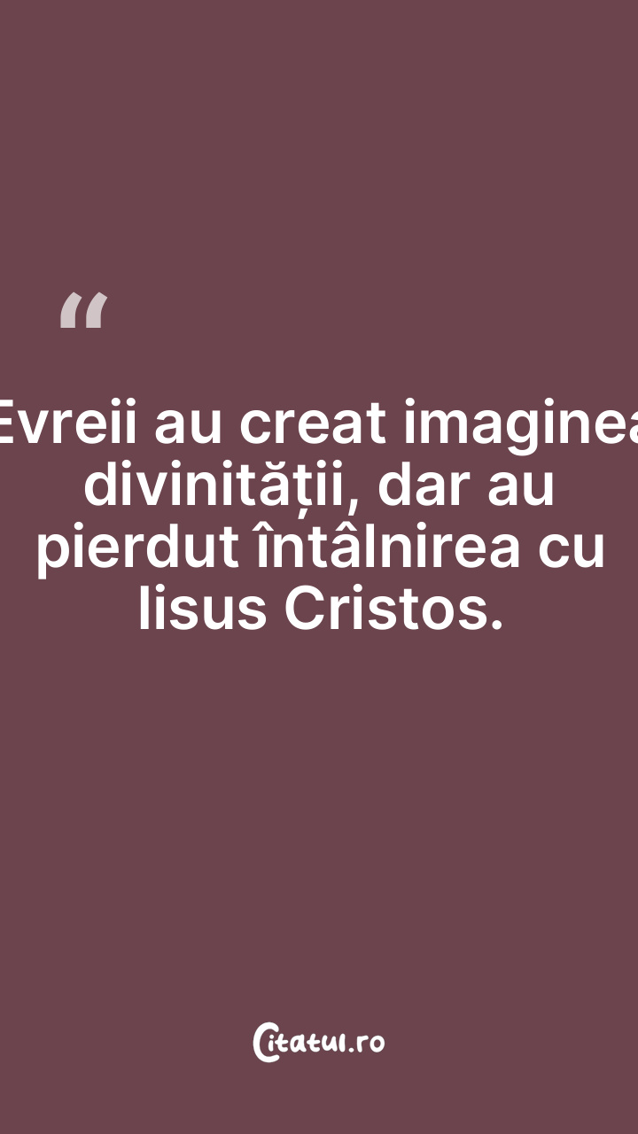 Evreii au creat imaginea divinității, dar au pierdut întâlnirea cu Iisus Cristos.