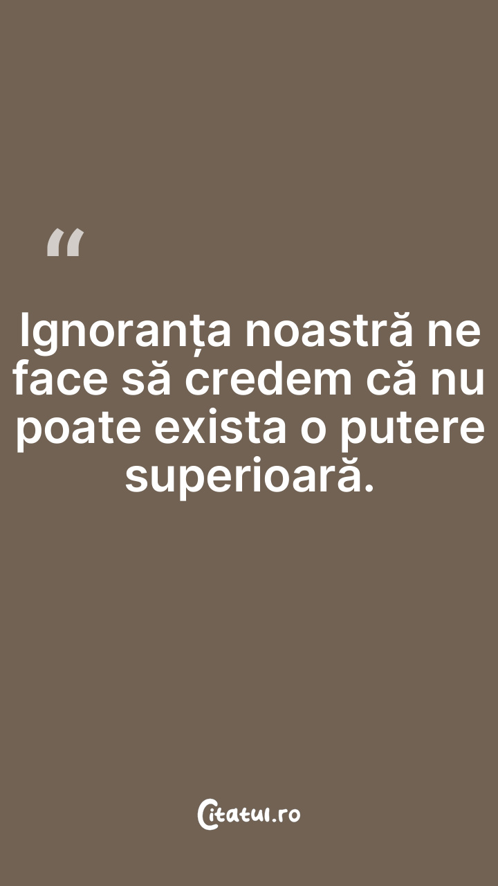 Ignoranța noastră ne face să credem că nu poate exista o putere superioară.