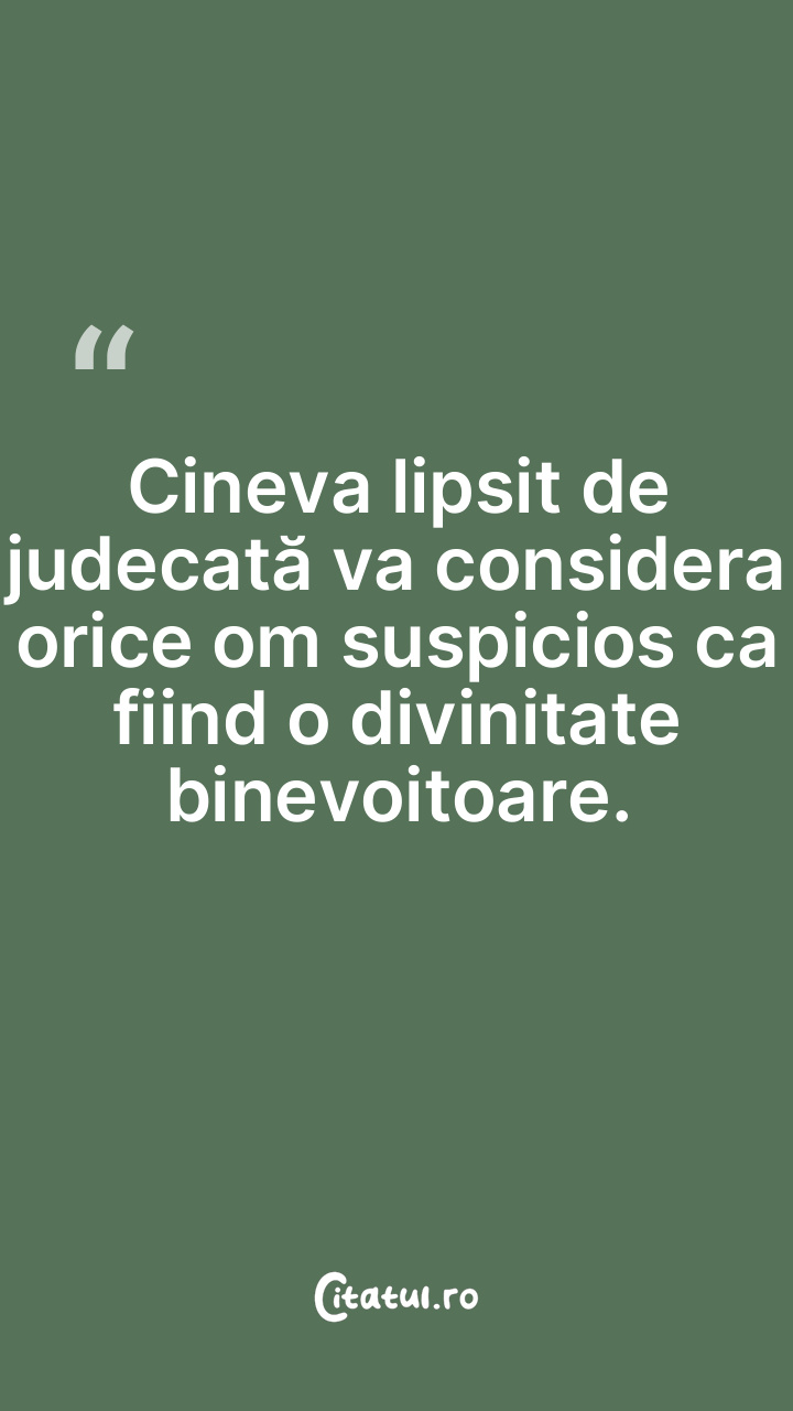 Cineva lipsit de judecată va considera orice om suspicios ca fiind o divinitate binevoitoare.