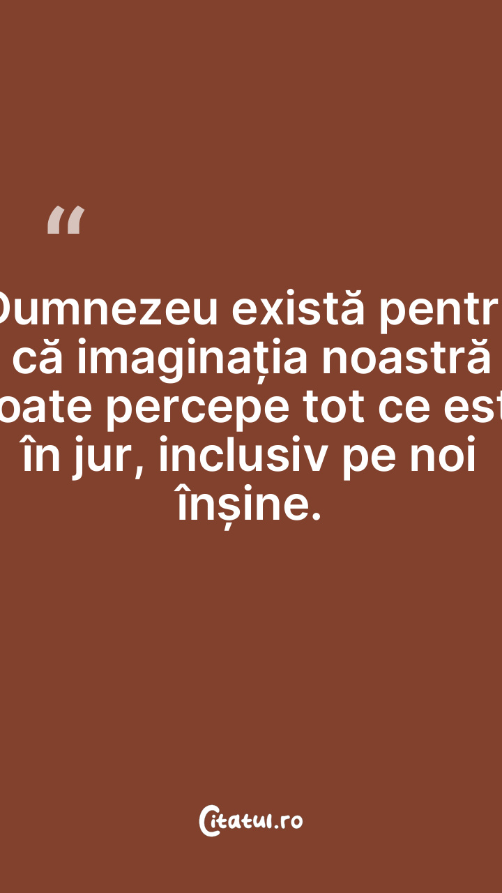 Dumnezeu există pentru că imaginația noastră poate percepe tot ce este în jur, inclusiv pe noi înșine.