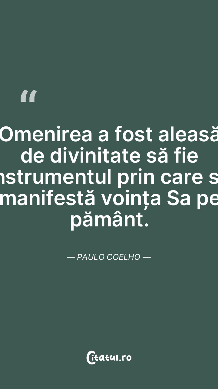 Omenirea a fost aleasă de divinitate să fie instrumentul prin care se manifestă voința Sa pe pământ. Paulo Coelho