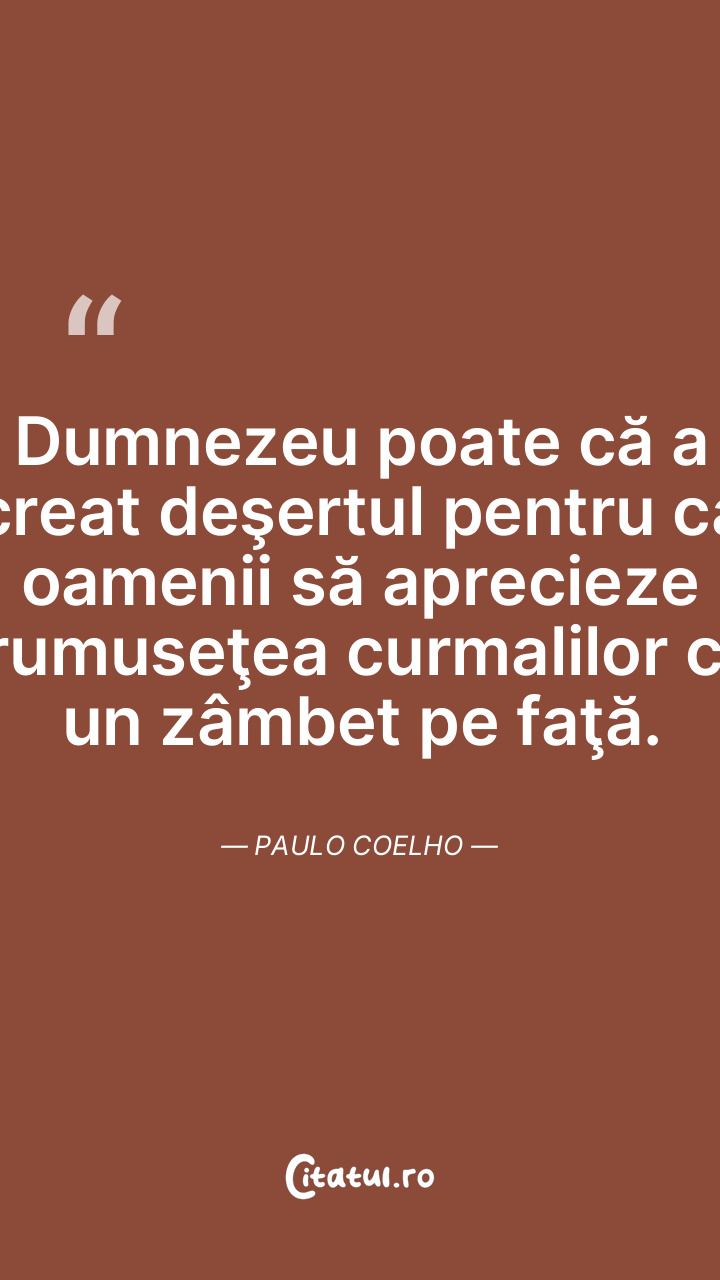 Dumnezeu poate că a creat deşertul pentru ca oamenii să aprecieze frumuseţea curmalilor cu un zâmbet pe faţă. Paulo Coelho