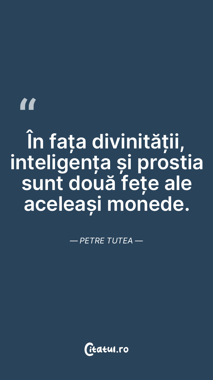 În fața divinității, inteligența și prostia sunt două fețe ale aceleași monede. Petre Tutea