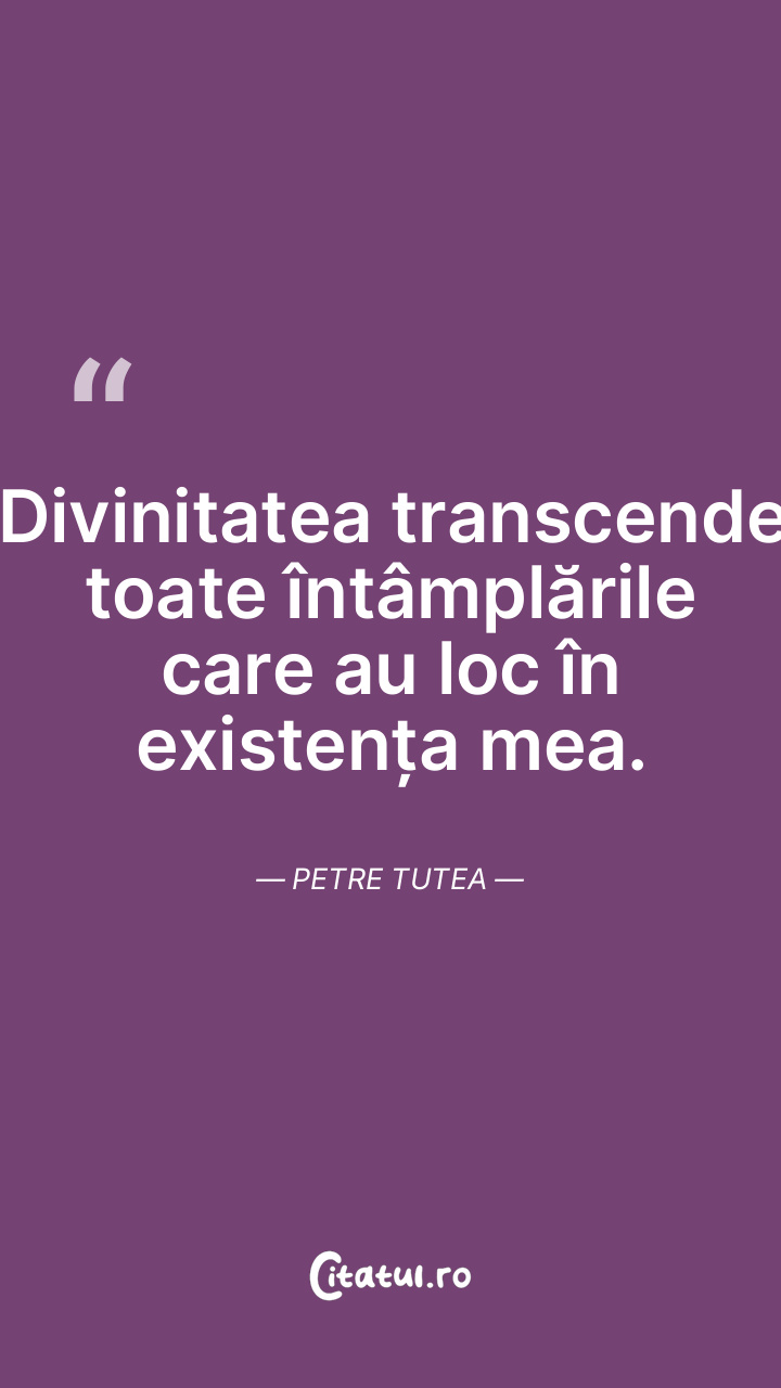 Divinitatea transcende toate întâmplările care au loc în existența mea. Petre Tutea