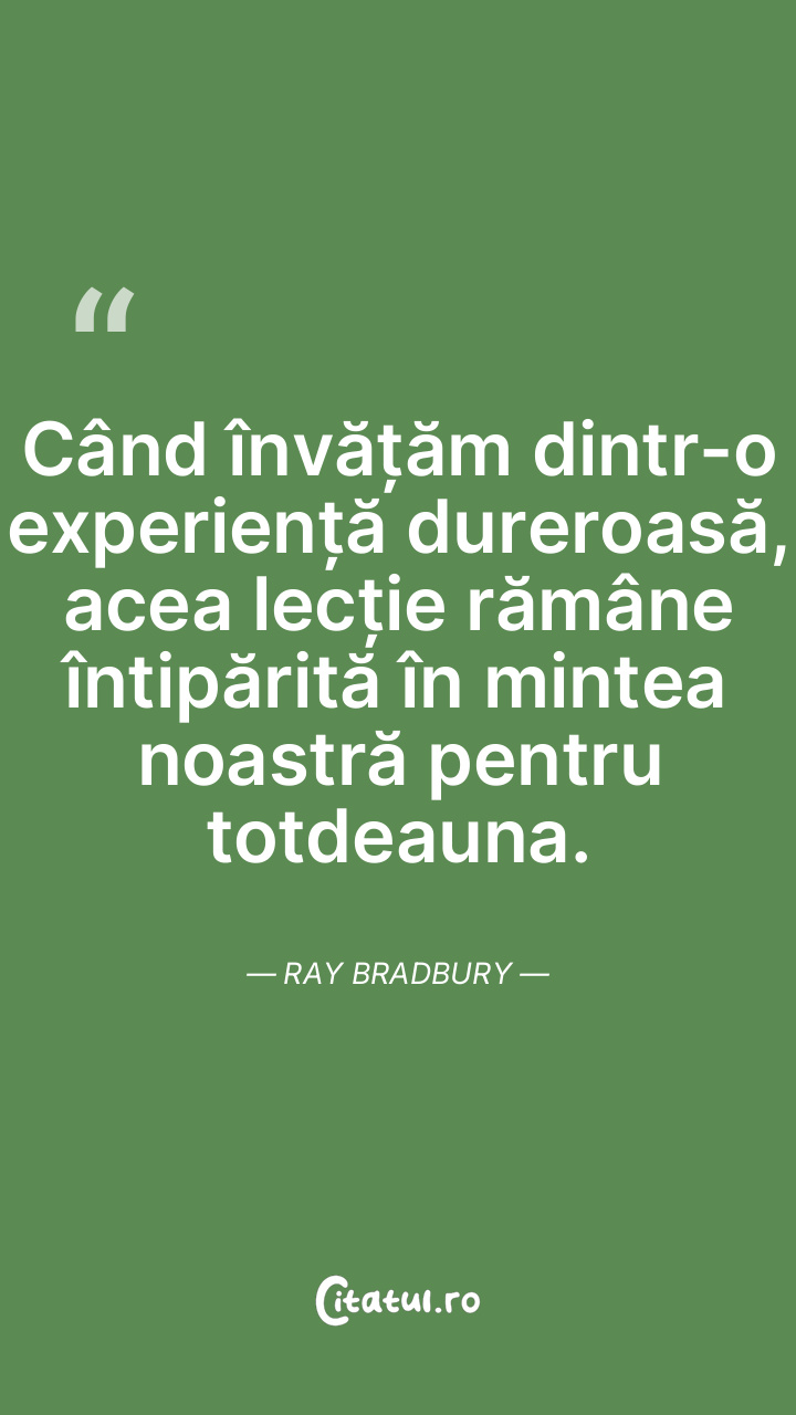 Când învățăm dintr-o experiență dureroasă, acea lecție rămâne întipărită în mintea noastră pentru totdeauna. Ray Bradbury