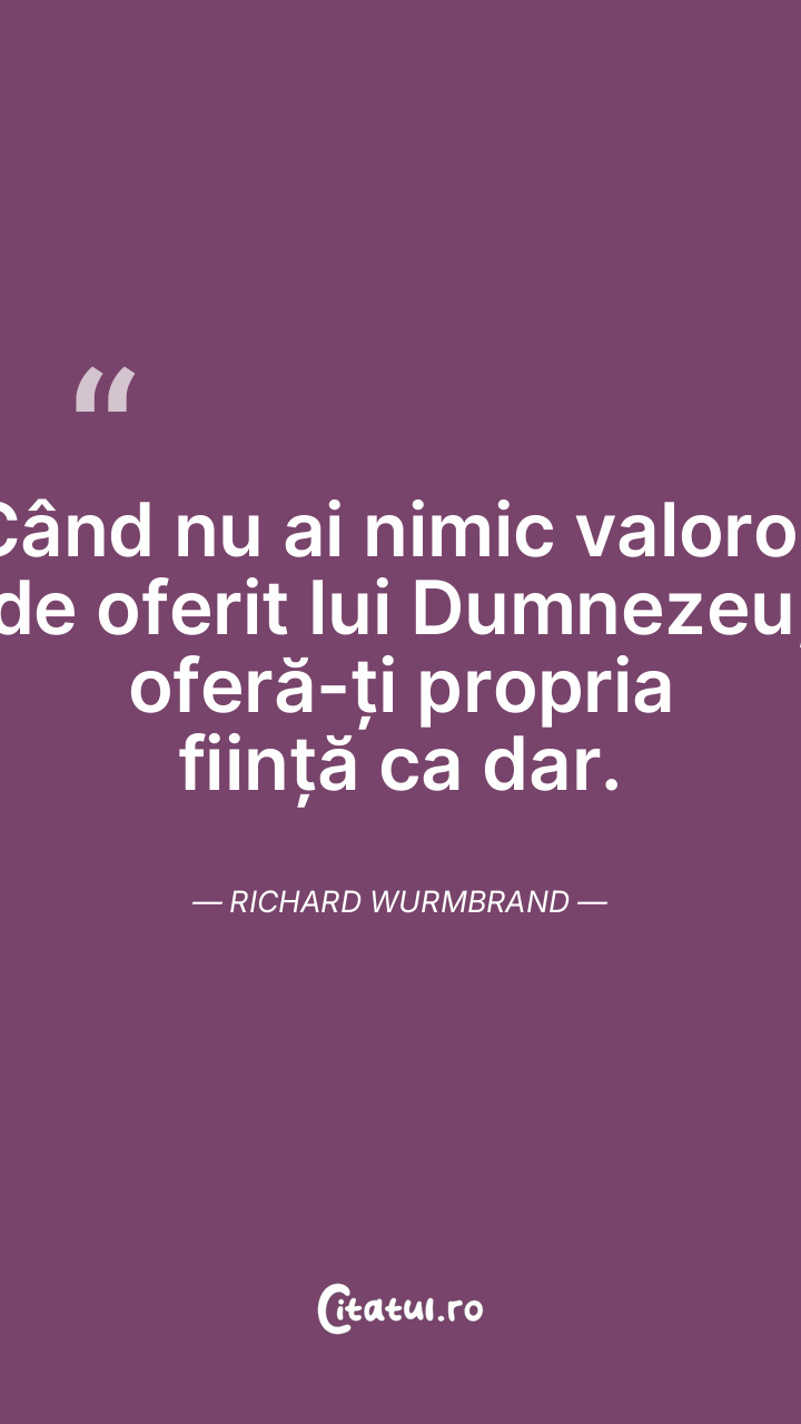 Când nu ai nimic valoros de oferit lui Dumnezeu, oferă-ți propria ființă ca dar. Richard Wurmbrand